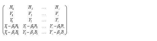現(xiàn)行的彩色電視系統(tǒng)中,由行向量H,幀向量V,亮度向量Y組成的,表達(dá)彩色信息的是由紅向量R,綠向量G,蘭向量B的三維線性空間。也可用以下的矩陣來表示: