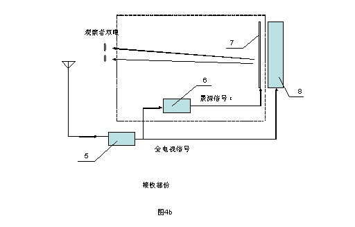 圖4b,新型立體電視系統(tǒng)的接收部份的框圖。其中虛線部份,即是在普通電視系統(tǒng)基礎(chǔ)上新增的部份。