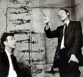 1951年~1953年在英國(guó)期間,沃森和克里克合作,應(yīng)用物理學(xué)、化學(xué)的新技術(shù)和生物學(xué)研究的新成果,用綜合的觀點(diǎn),把自己的創(chuàng)造性工作同前人的研究成就結(jié)合起來(lái),提出了DNA的雙螺旋結(jié)構(gòu)學(xué)說(shuō),這個(gè)學(xué)說(shuō)不但闡明了DNA的基本結(jié)構(gòu),并且為一個(gè)DNA分子如何復(fù)制成兩個(gè)結(jié)構(gòu)相同DNA分子以及DNA怎樣傳遞生物體的遺傳信息提供了合理的說(shuō)明,成功地解決了DNA的三維結(jié)構(gòu)問(wèn)題。