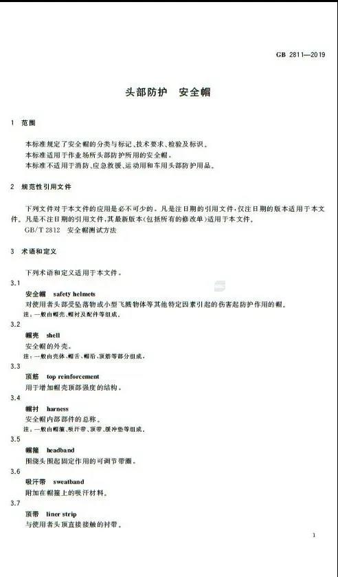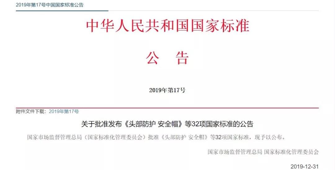 國(guó)家市場(chǎng)監(jiān)管總局、國(guó)家標(biāo)準(zhǔn)委批準(zhǔn)發(fā)布新版安全帽標(biāo)準(zhǔn)GB2811-2019《頭部防護(hù) 安全帽》,將于2020年7月1日起正式生效。