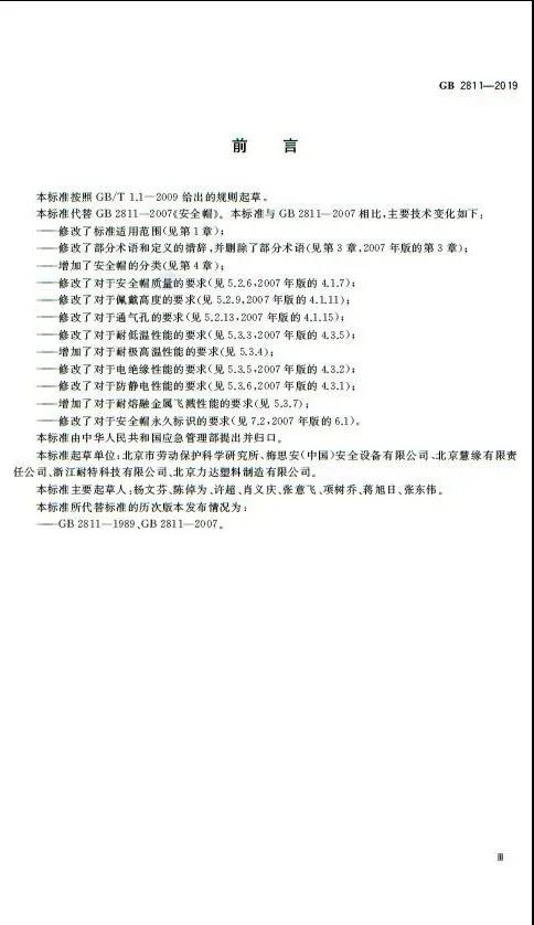 相比較于舊版GB2811-2007,新版安全帽標(biāo)準(zhǔn)GB2811-2019《頭部防護(hù) 安全帽》做出了如下修改: