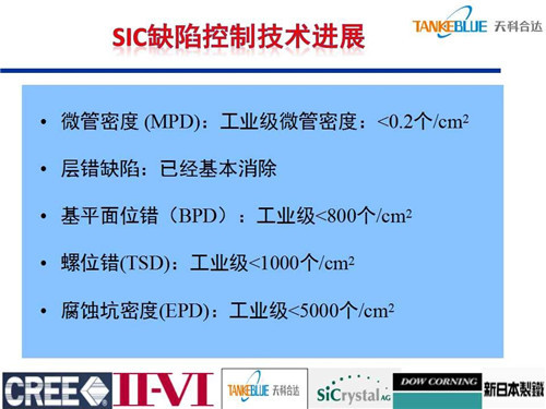 目前工業(yè)級碳化硅襯底微管密度小于0.2個/cm2,層錯缺陷基本消除,基平面位錯工業(yè)級襯底小于800個/cm2。經預測,2019年碳化硅襯底市場約為3.5億美金,主要包括電力電子和微波領域,加上LED等其他領域應用,大概為8億美金。