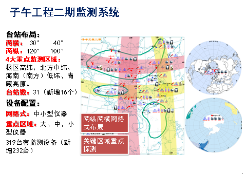 四聚焦:對極區(qū)的高緯度地區(qū),對我國漠河的北方,海南島的南方和青藏高原地區(qū)增加一些大型設(shè)備,做到精細(xì)探測。