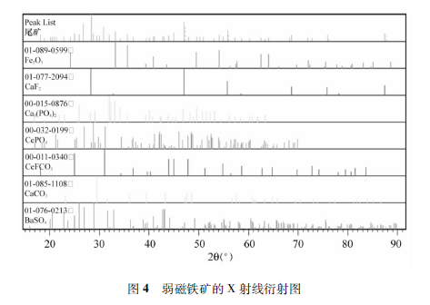 包頭弱磁鐵礦X射線衍射如圖4所示。