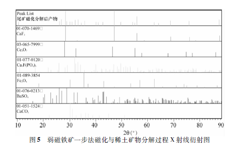 采用弱磁鐵礦磁化與稀土礦物分解一步法后X射線衍射如圖5所示。