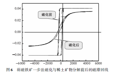 弱磁鐵礦一步法磁化與稀土礦物分解前后的磁滯回線如圖6所示。