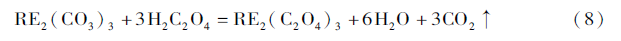 稀土沉淀過程使用沉淀劑進行沉淀轉(zhuǎn)型和進一步除去雜質(zhì),典型的沉淀劑為草酸(H2C2O4)。其反應(yīng)為: